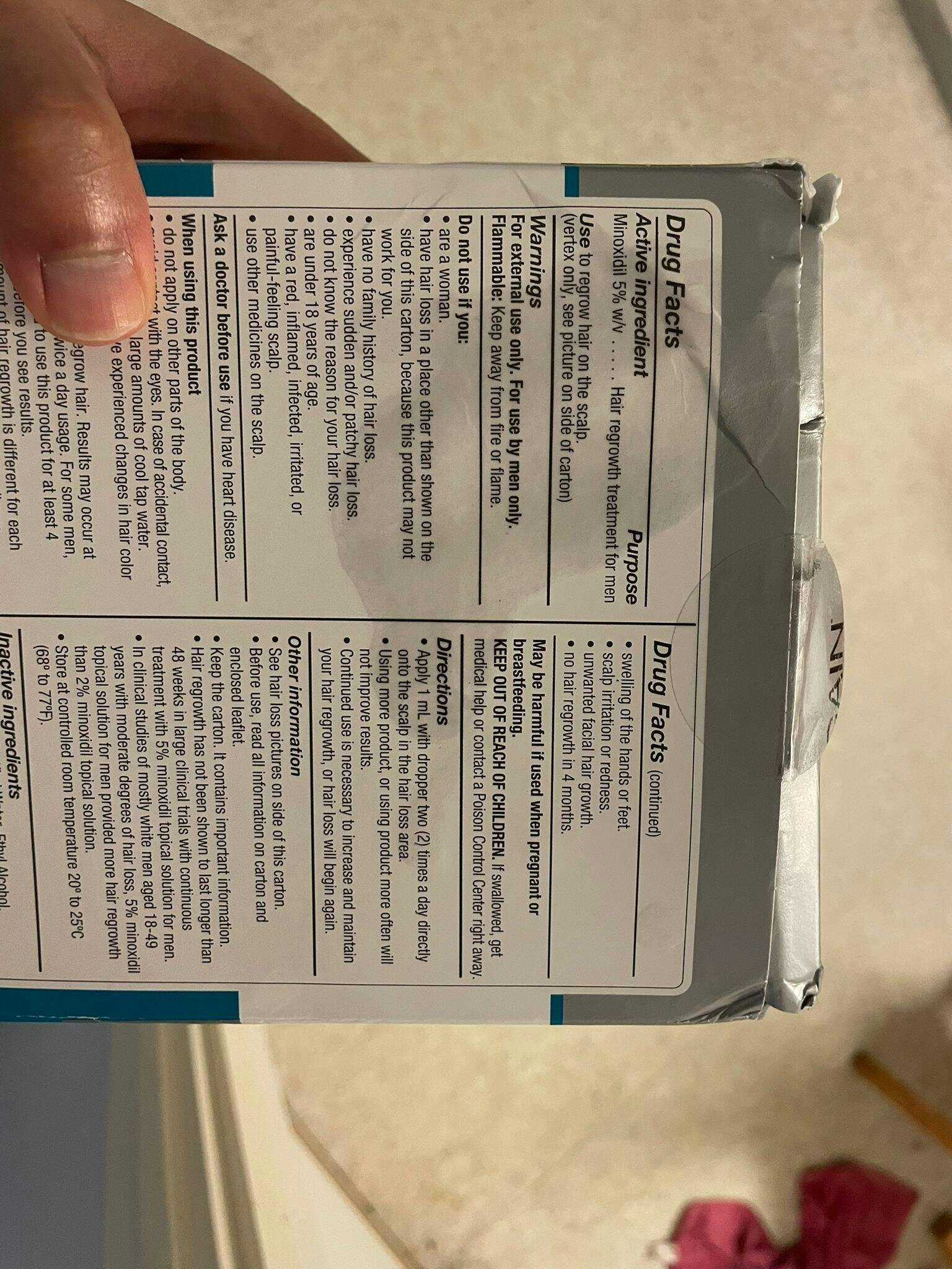 Applicare 1 ml con contagocce due (2) volte al giorno direttamente sul cuoio capelluto nell'area di caduta dei capelli. Usare più prodotto o usarlo più spesso non migliorerà i risultati. L'uso continuato è necessario per mantenere e aumentare la ricrescita dei capelli, altrimenti la caduta dei capelli ricomincerà.